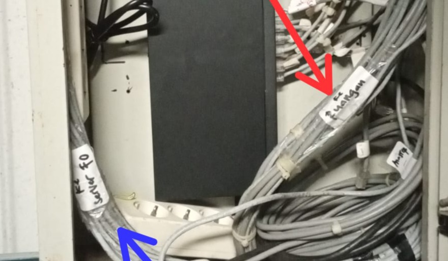 - 3. Kabel Lan yang sudah tidak di gunakan rapikan dengan menggulung dan letakan ke dapat FO Panel.
